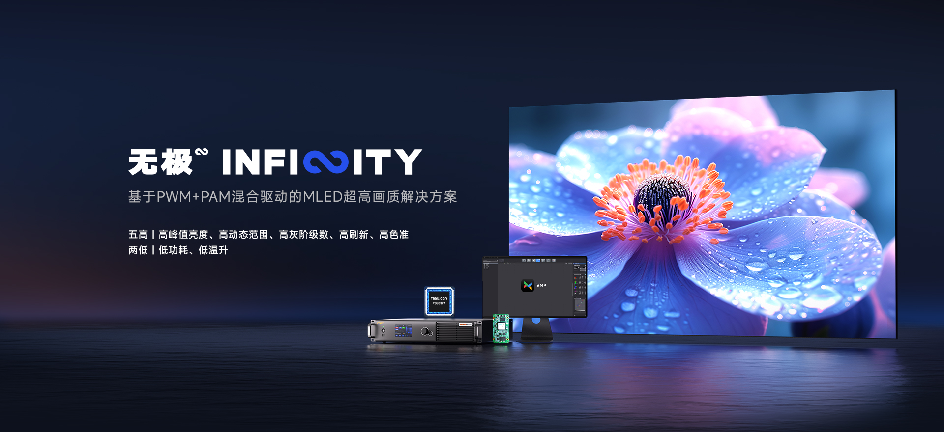 基于PWM+PAM混合驅(qū)動的MLED超高畫質(zhì)解決方案,通過控制系統(tǒng)、智能算法、全灰階校正與PWM+PAM混合驅(qū)動IC的深度融合,實(shí)現(xiàn)全鏈路技術(shù)突破,呈現(xiàn)非凡的顯示效果